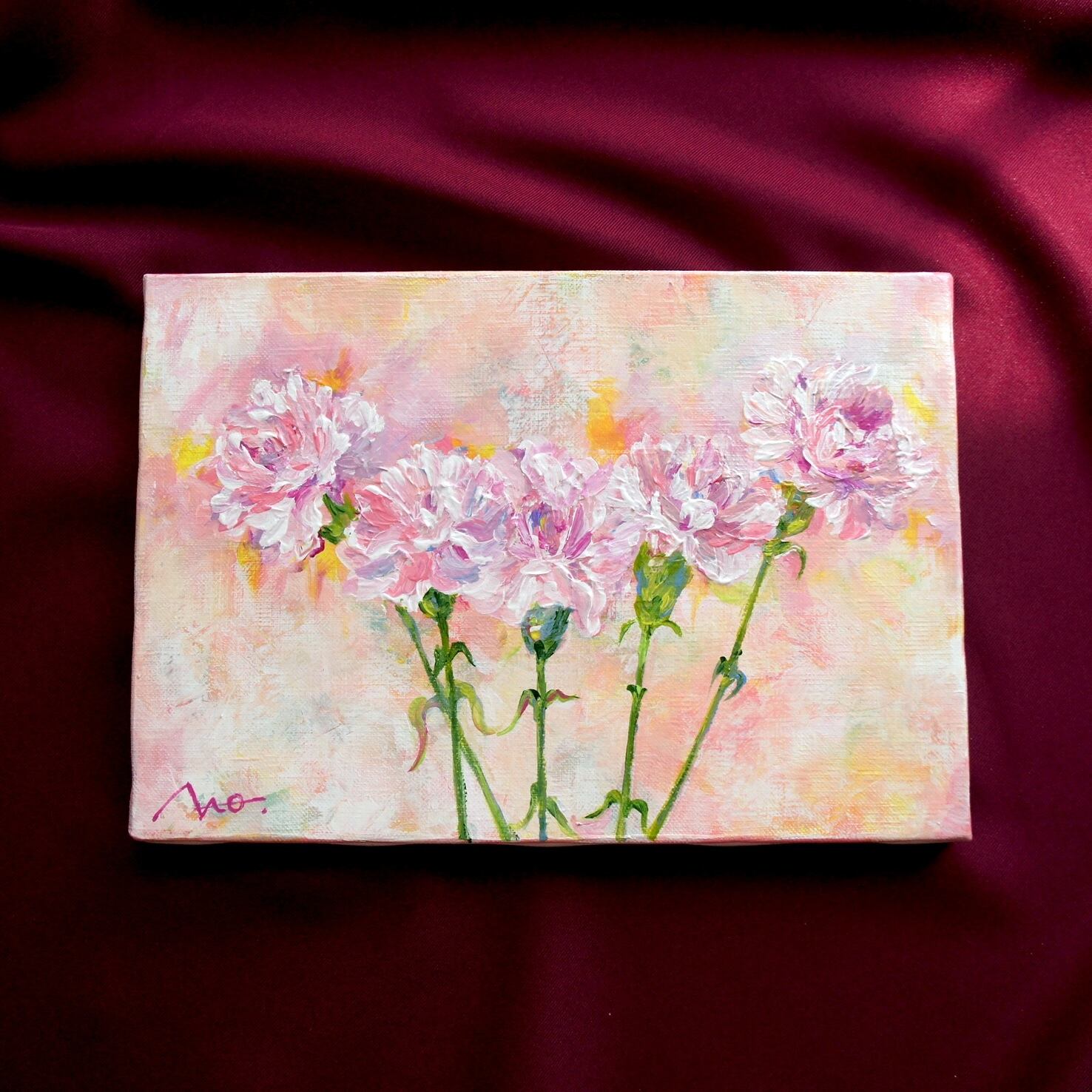【一点物・再販不可】P3号【母の日】花 カーネーション 絵 「優しいあなたへ」2022|infinity artist NAO・無限藝術家NAO